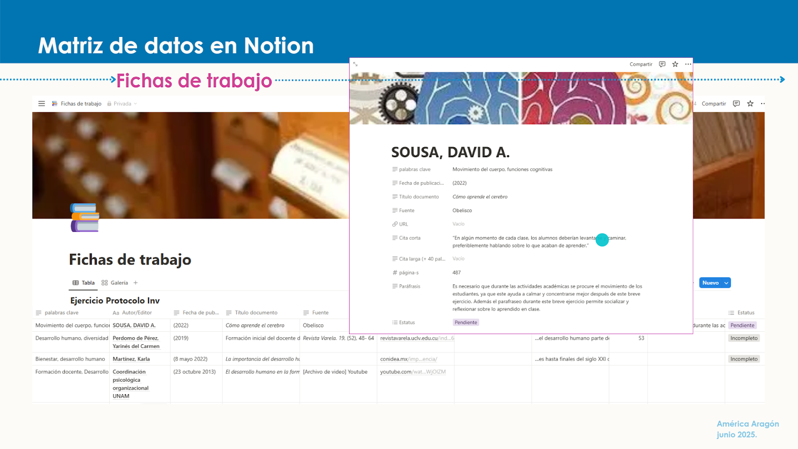 Matriz de datos en Notion, basada en la estructura del formato APA